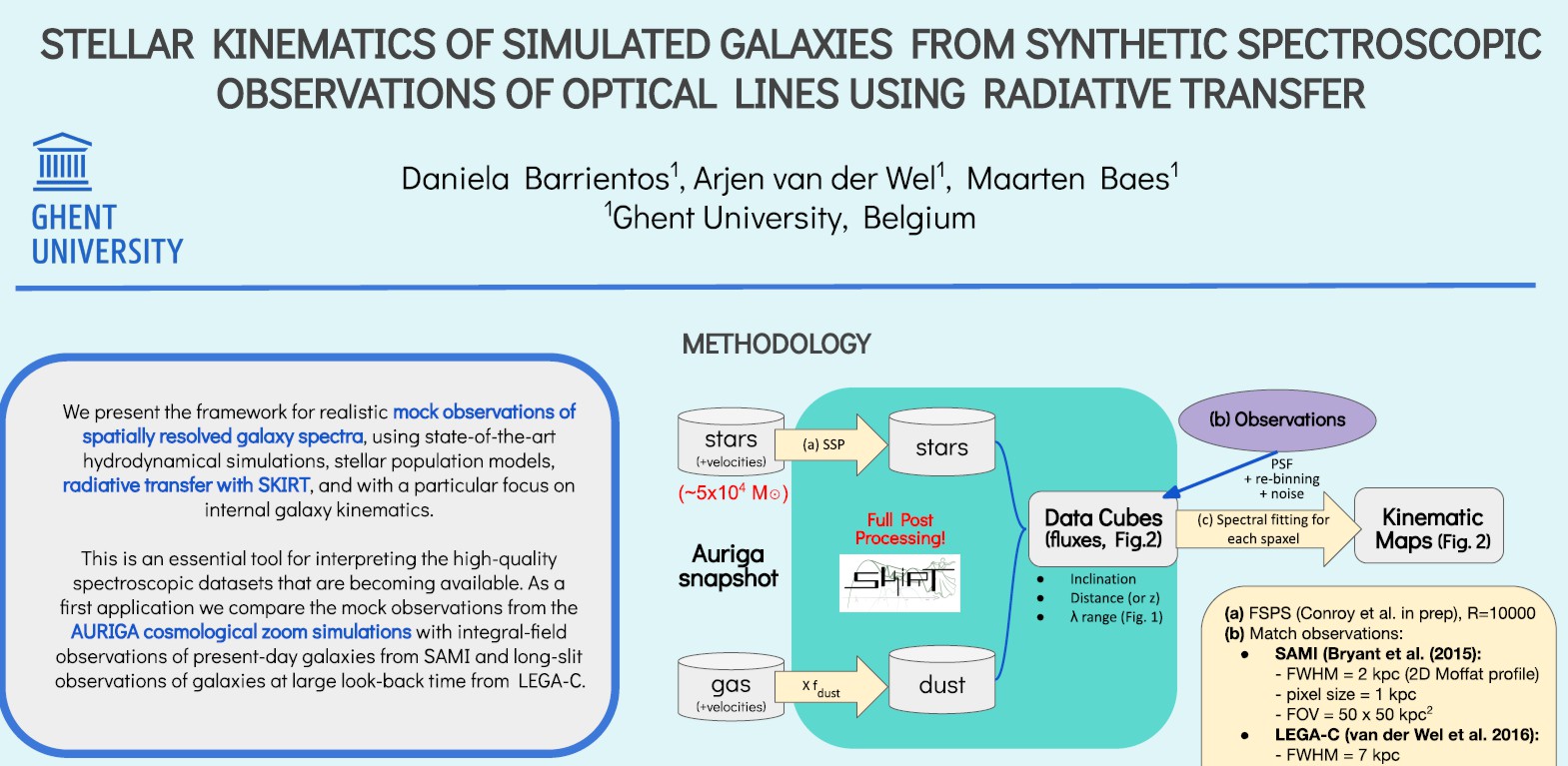 | P01 | | Daniela Barrientos, Arjen van der Wel, Maarten Baes | Stellar kinematics of simulated galaxies from synthetic spectroscopic observations of optical lines using radiative transfer |