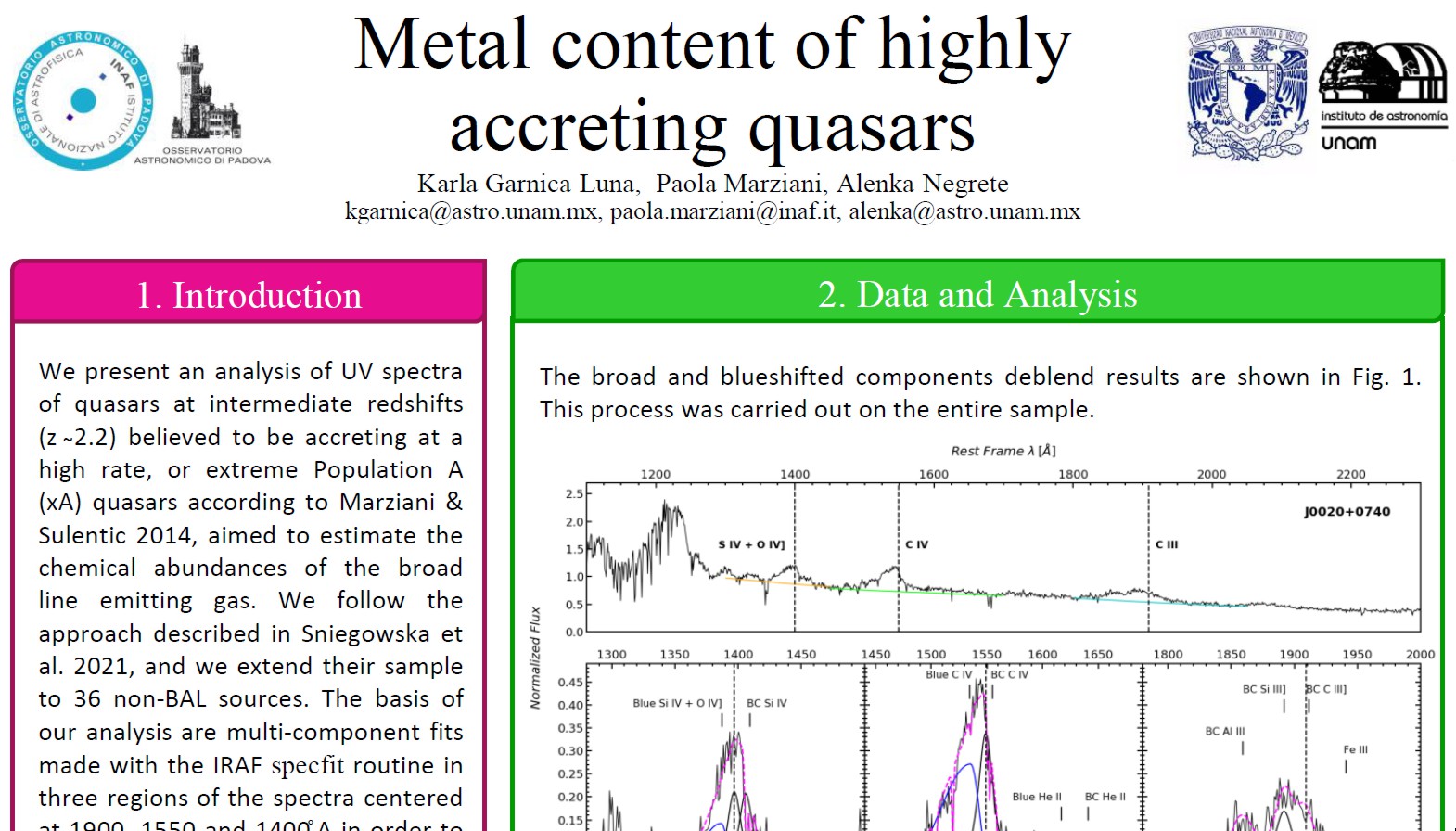 | P06 | | Karla Garnica Luna, Paola Marziani, A. Negrete | Metallicity in highly accreting quasars |
