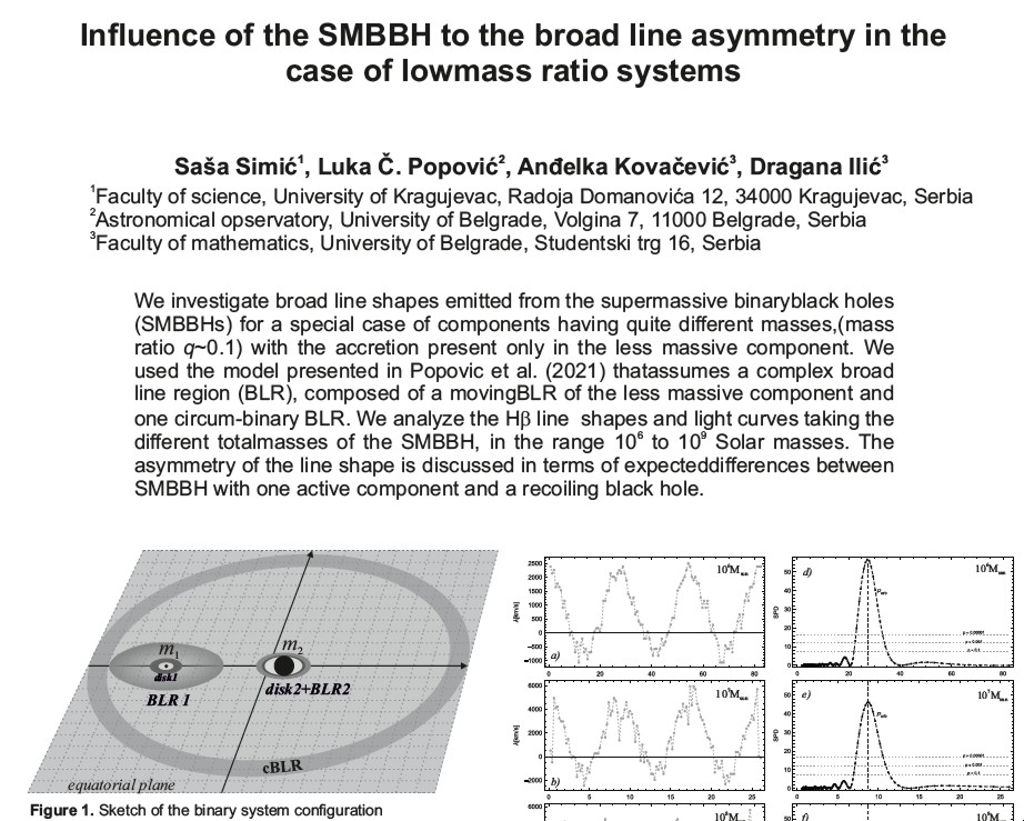| P13 | | Saša Simić, Luka Č. Popović, Anđelka Kovačević, Dragana Ilić | Influence of the SMBBH to the broad line asymmetry in the case of low mass ratio systems |