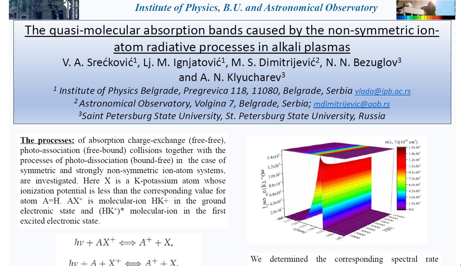 | P08 | | Ljubinko M. Ignjatović, Vladimir A. Srećković, Milan S. Dimitrijević | The quasi-molecular absorption bands caused by the non-symmetric ion-atom radiative processes in alkali plasmas |