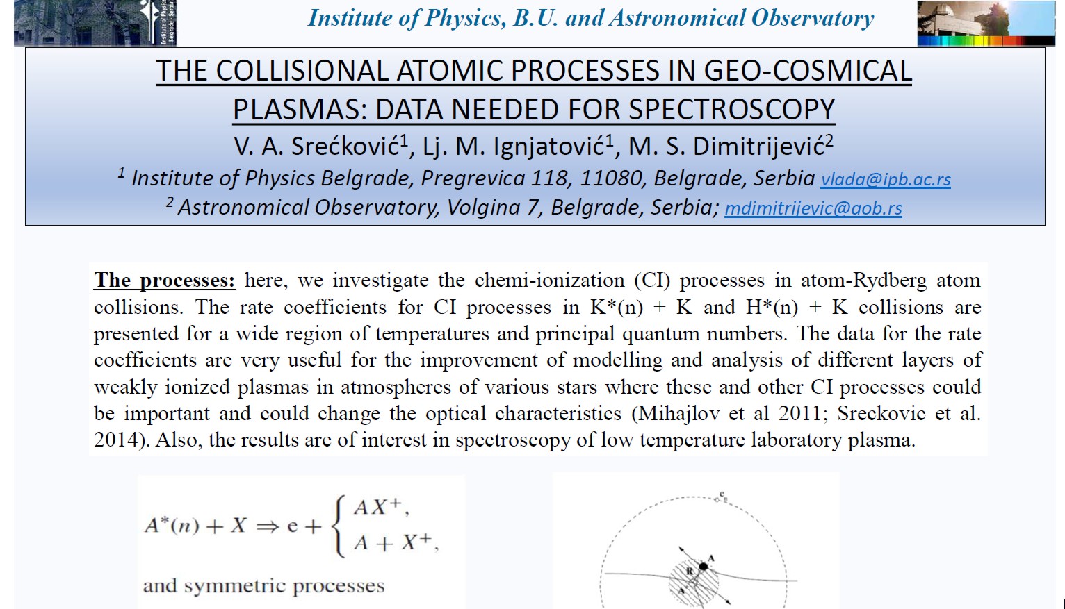 | P14 | | Vladimir A. Srećković, Lj. M. Ignjatović, M. S. Dimitrijević | The collisional atomic processes in geo-cosmical plasmas: data needed for spectroscopy |