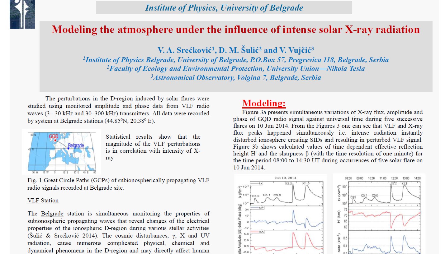 | P15 | | Vladimir A. Srećković, D. M. Šulić, V. Vujčić | Modeling the atmosphere under the influence of intense solar X-ray radiation |