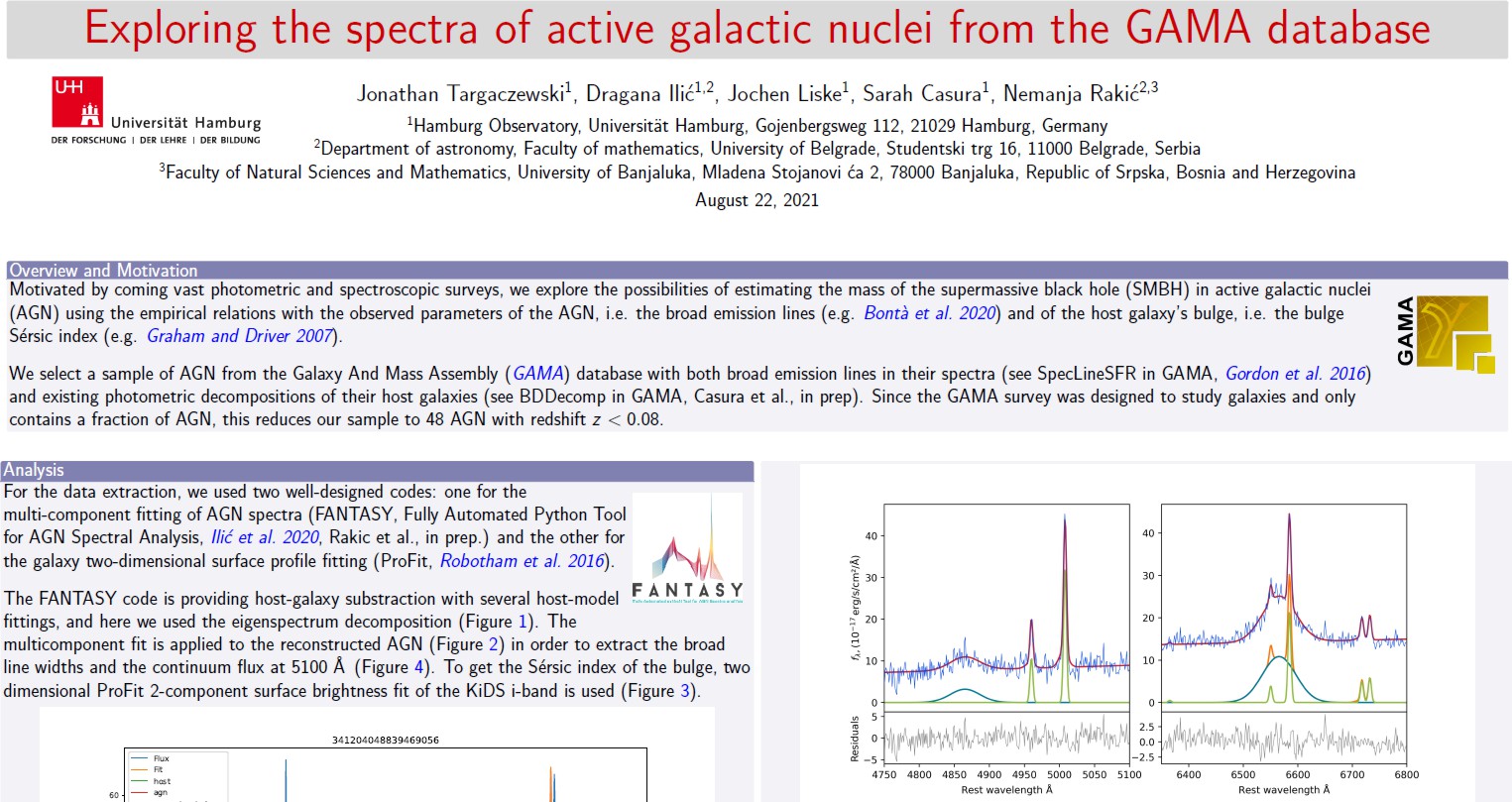 | P16 | | Jonathan Targaczewski, Dragana Ilić, Jochen Liske | Exploring the spectra of active galactic nuclei from the GAMA database |